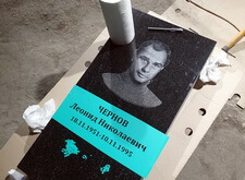 Затем, отретушировав фотографии, мы нанесли их на гранит в черновом варианте