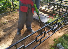 Затем мы сварили по периметру могилы борта из металлических полос, которые и будут являться границей брусчатки. Земля была застелена геотекстилем, который и предотвратит прорастание травы сквозь швы между плитками.